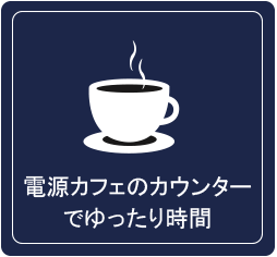 電源カフェ・キッズスペース・ウッドデッキカウンターなど